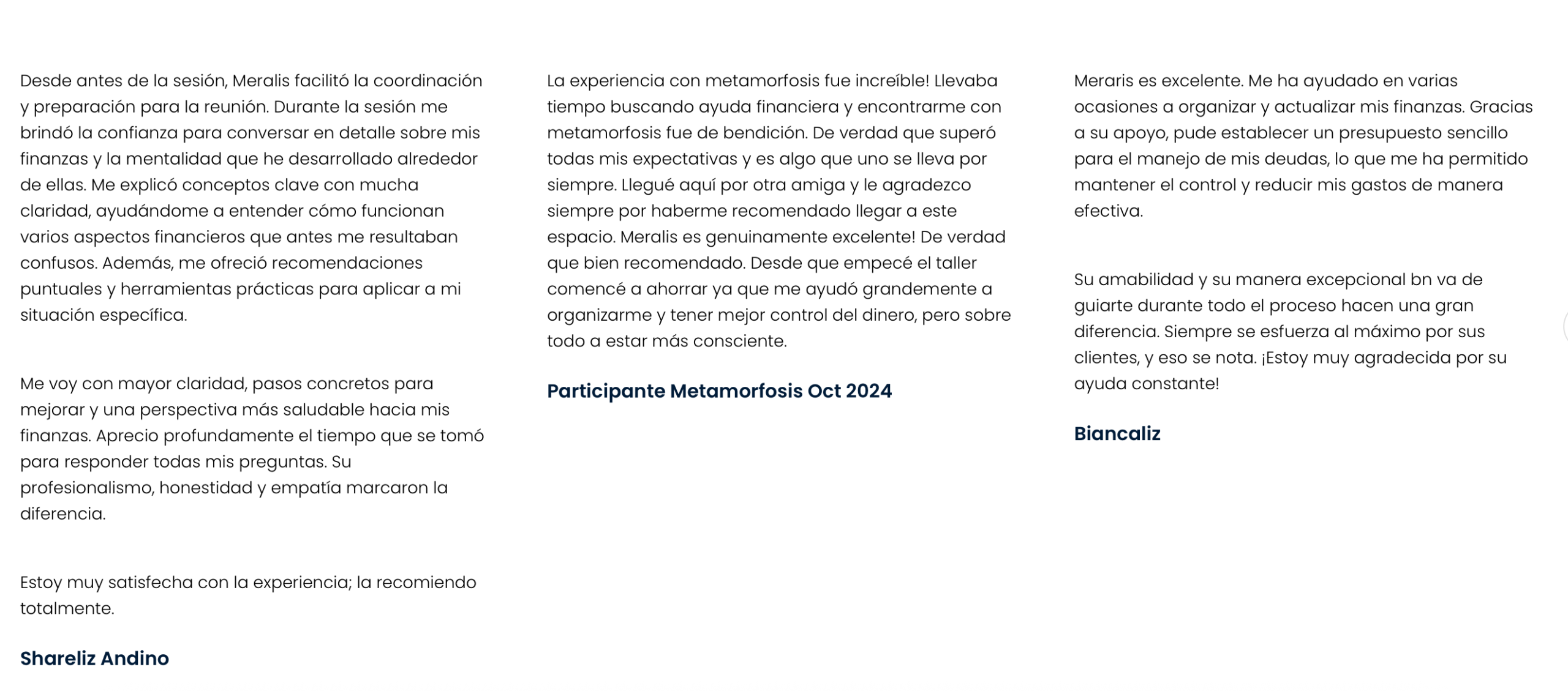 Con una sólida formación en finanzas personales, auditoría, cumplimiento regulatorio y análisis de riesgos, mi objetivo es proporcionar herramientas prácticas y accesibles para que las mujeres puedan organizar sus finanzas, salir de deudas y planificar un futuro financiero estable y próspero.